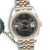 The Datejust 126331 from 2025 combines Oystersteel with 18 karat Everose gold, a material choice known as Rolex's proprietary rose gold alloy. The 41 mm case and the fluted bezel in Everose gold give this watch a luxurious and distinctive appearance. The rhodium-colored ‘Wimbledon’ dial with green Roman numerals makes this piece extra special.
