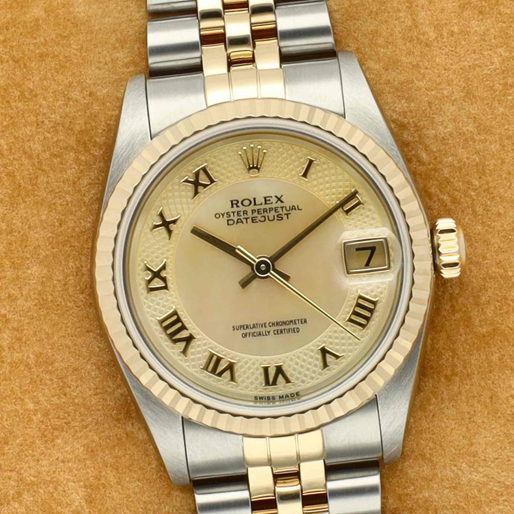 The Rolex Datejust, introduced in 1945, was the first automatic, waterproof chronometer wristwatch with a date window at 3 o'clock. This pioneering innovation made the Datejust a lasting icon in watchmaking. Over the years, the model has appeared in numerous versions, including the Midsize 31 mm, loved for its elegant and versatile size.