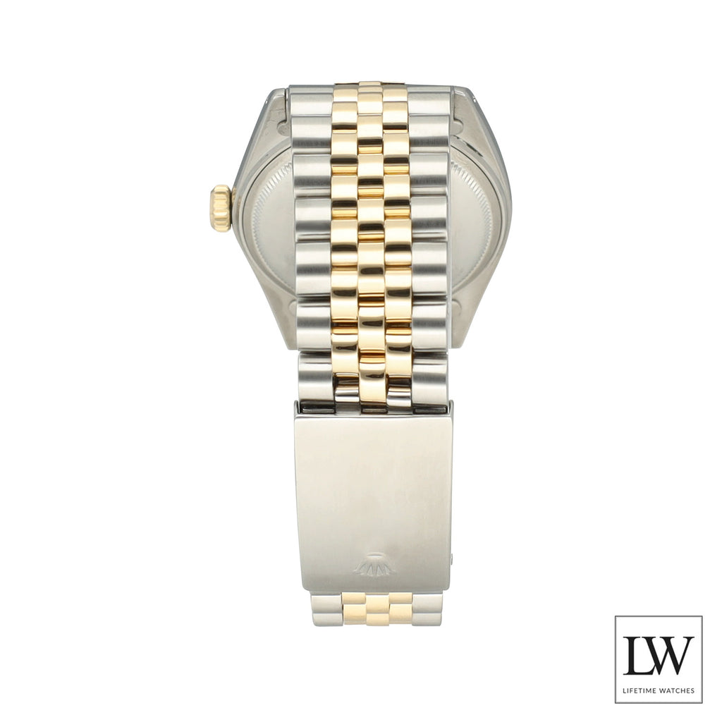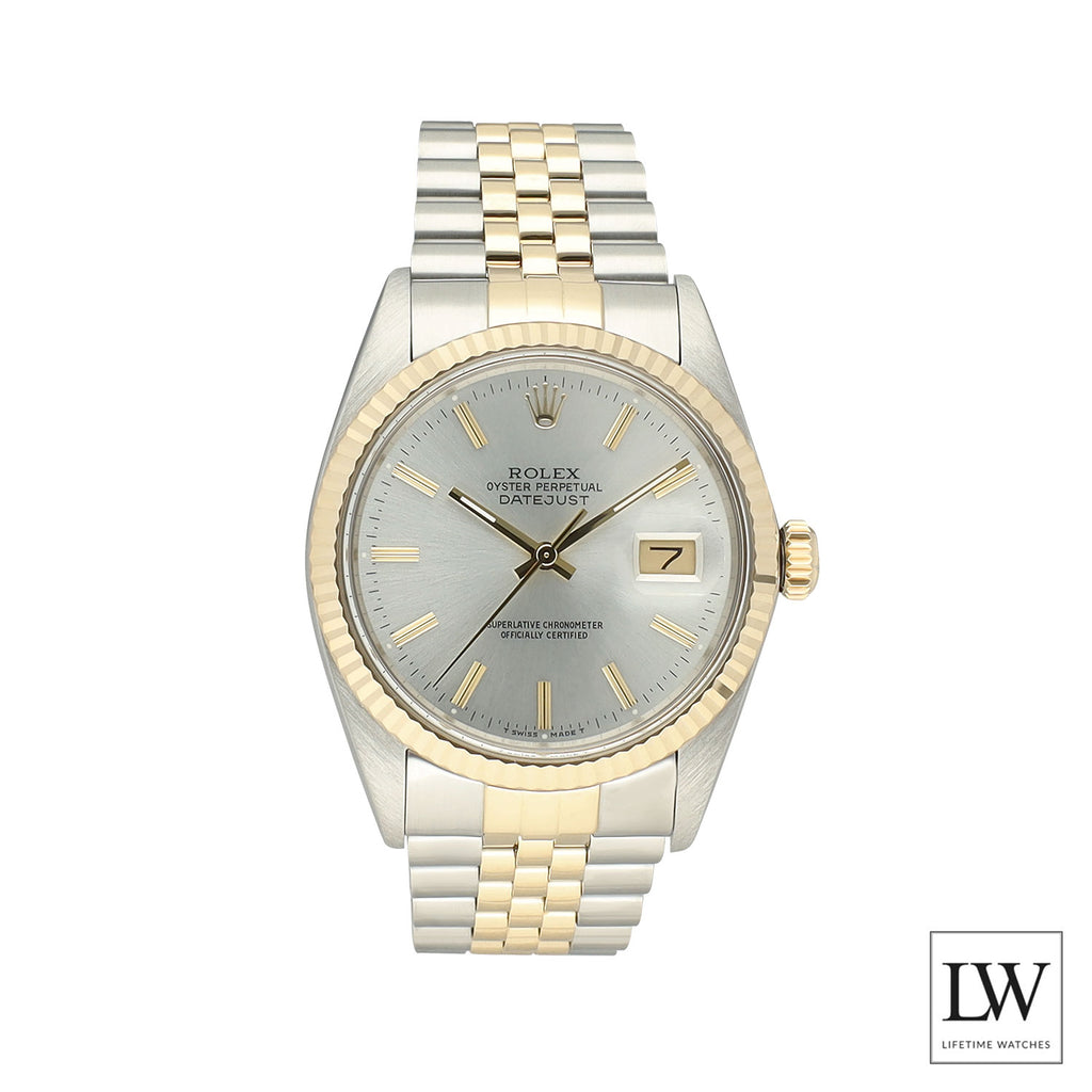 Dit prachtige exemplaar betreft een Rolex Datejust 16013 uit 1986, uitgevoerd in Oystersteel en 18 karaat geelgoud, voorzien van een fluted bezel. De zilverkleurige wijzerplaat benadrukt het klassieke en elegante karakter van dit 36 mm-model.