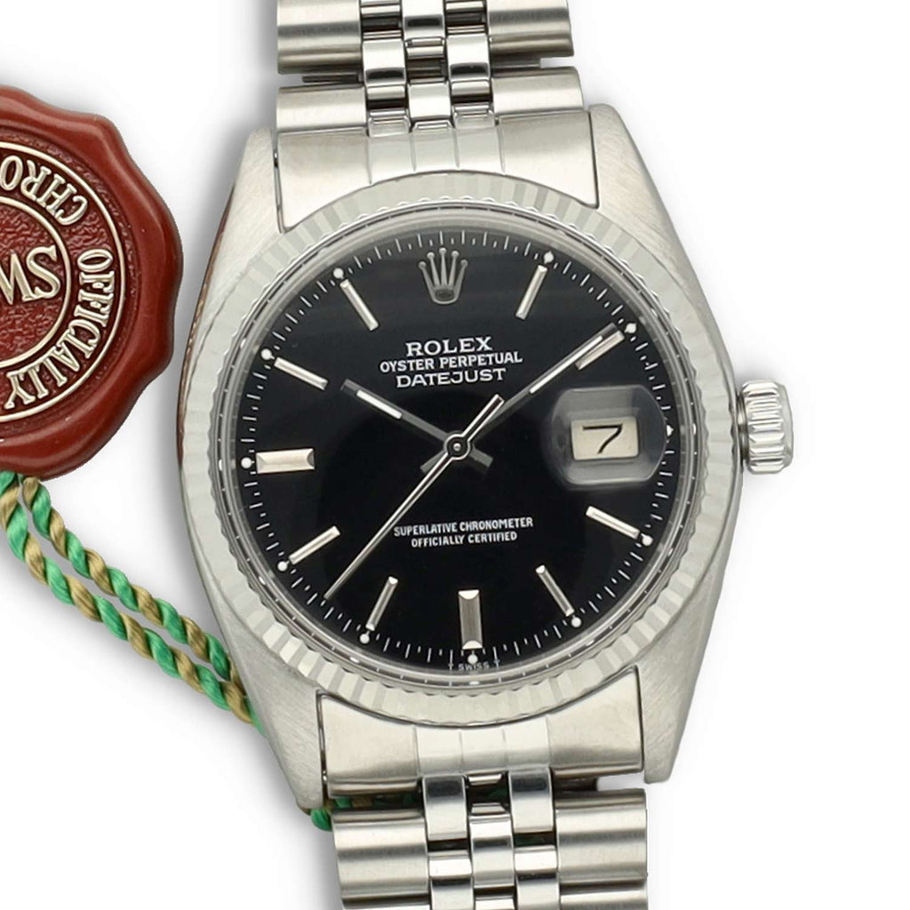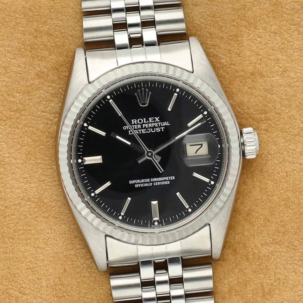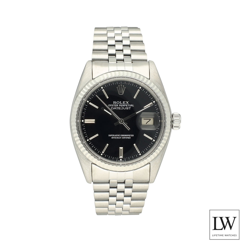 Dit prachtige pre-owned exemplaar betreft een Rolex Datejust referentie 16014 uit 1985. Het horloge is uitgevoerd in Oystersteel en voorzien van een 18 karaat witgouden fluted bezel. De zwarte wijzerplaat geeft het horloge een krachtige en klassieke uitstraling en vormt een stijlvolle combinatie met de elegante Jubilee band, die bekendstaat om zijn comfort en verfijnde karakter.
