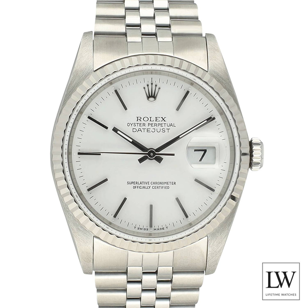 De Rolex Datejust 16234 is een absolute klassieker binnen het merk, geliefd om zijn tijdloze uitstraling en betrouwbare techniek. Dit prachtige exemplaar uit 1994 beschikt over een witte wijzerplaat, wat zorgt voor een frisse en uiterst elegante look — een perfecte keuze voor zowel dagelijks gebruik als formele gelegenheden.