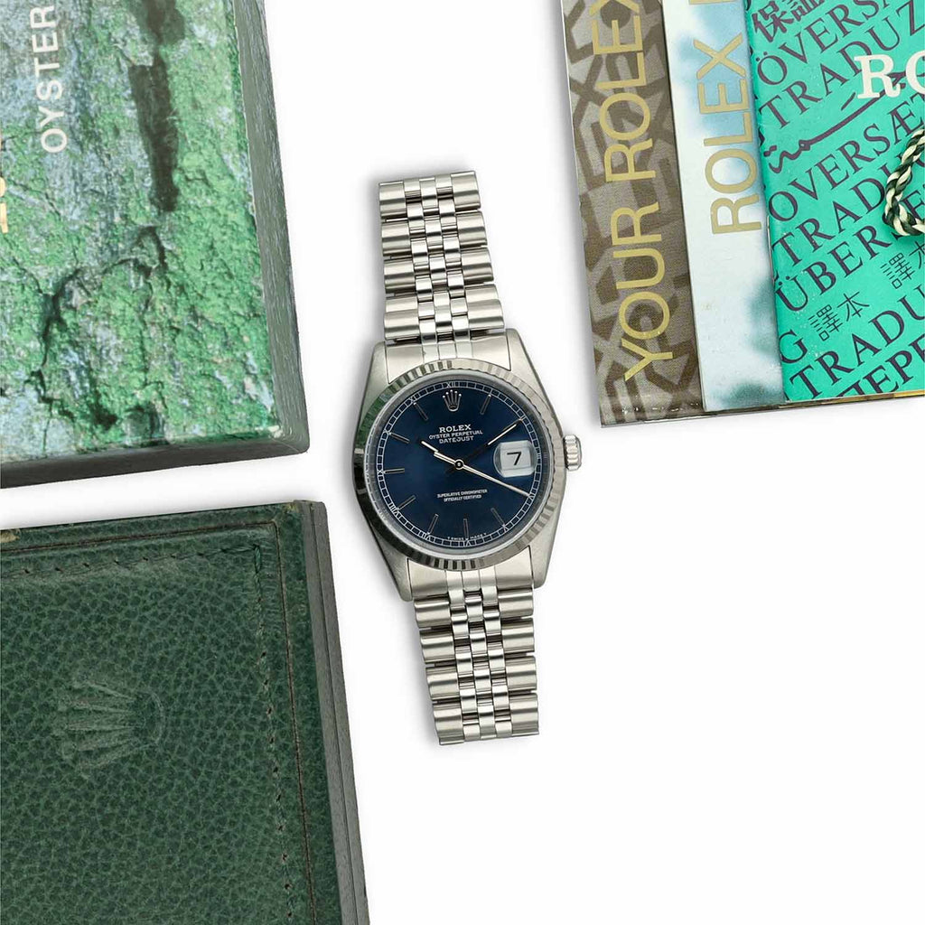 De Rolex Datejust werd in 1945 geïntroduceerd en markeerde een belangrijk moment in de horlogegeschiedenis. Als eerste automatische, waterdichte chronometer met een datumaanduiding op de 3 uur positie zette dit model een nieuwe standaard. Een ontwerp dat uitgroeide tot een van de meest iconische en geliefde horlogemodellen ooit.
