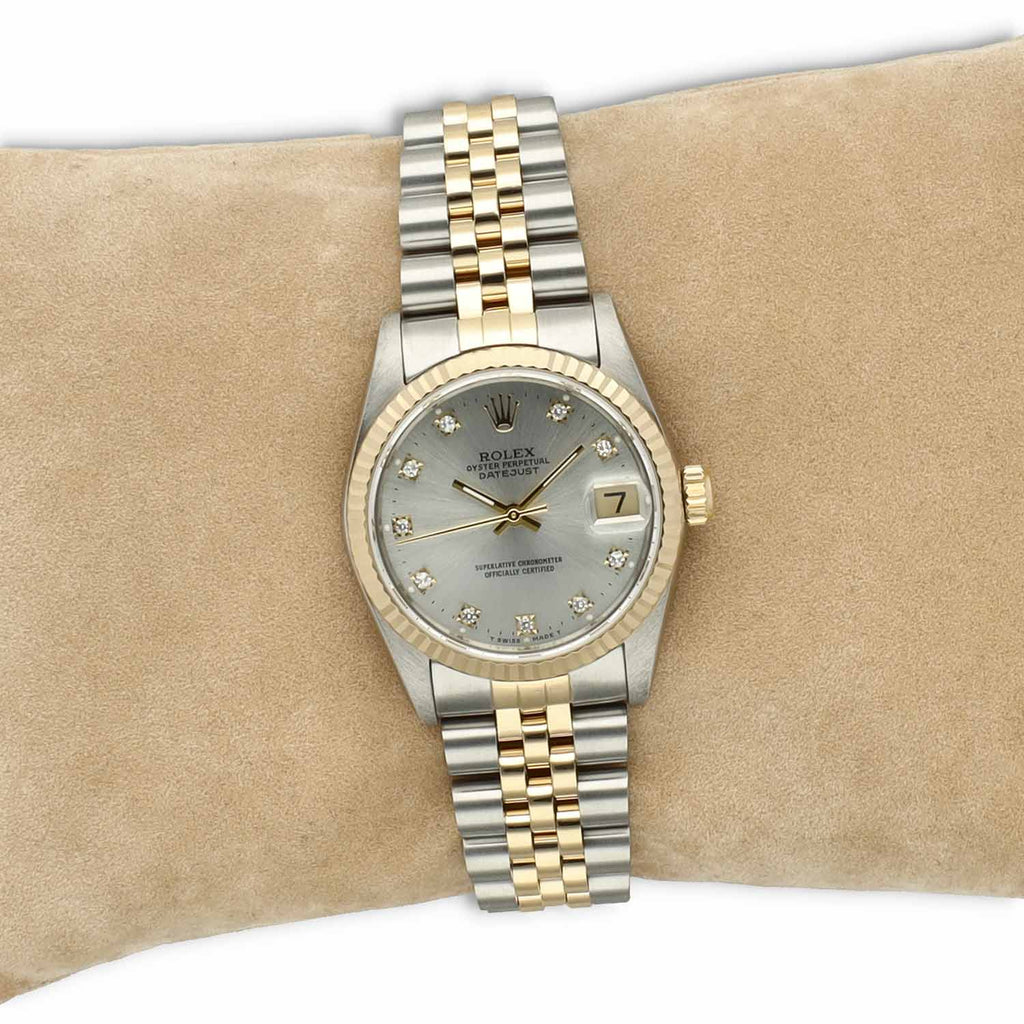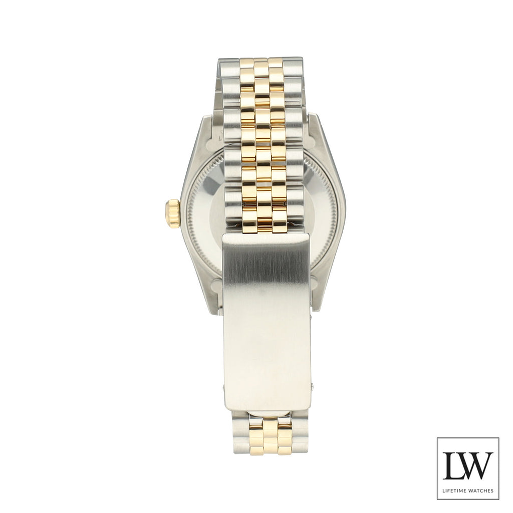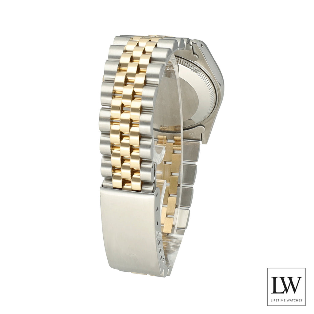 Deze Rolex Datejust Midsize 31 mm uit 1990 is uitgevoerd in een elegante combinatie van Oystersteel en 18 karaat geelgoud en is voorzien van de geliefde Jubilee band, wat het horloge een tijdloze en verfijnde uitstraling geeft. De Silver wijzerplaat met subtiele small diamond uurmarkeringen zorgt voor een luxueus accent.