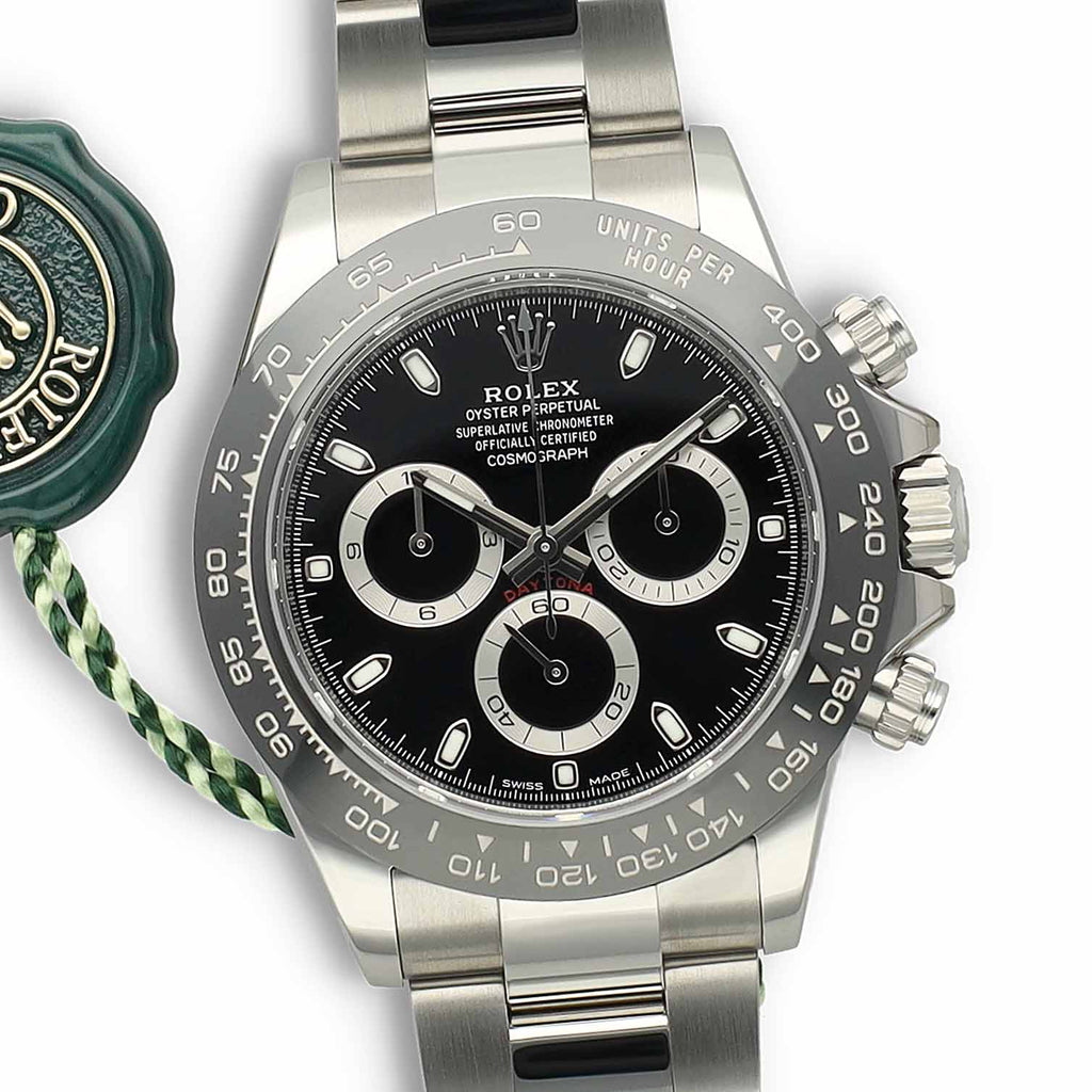 De Rolex Oyster Perpetual Cosmograph Daytona, geïntroduceerd in 1963 is speciaal ontworpen voor professionele autocoureurs. Deze chronograaf biedt de mogelijkheid om race-tijden bij te houden en snelheden te meten dankzij de kenmerkende tachymetrische bezel. De Daytona is een eerbetoon aan de historische plaats Daytona Beach (Florida) waar de passie voor snelheid en racen in de 20ste eeuw hoogtij vierde. De naam weerspiegelt de band tussen Rolex en de autosport, die in 2013 nog verder werd versterkt toen het merk zich aansloot als wereldwijde partner van de Formule 1.