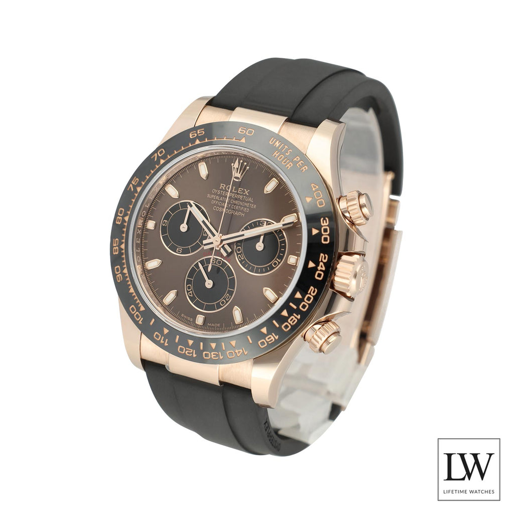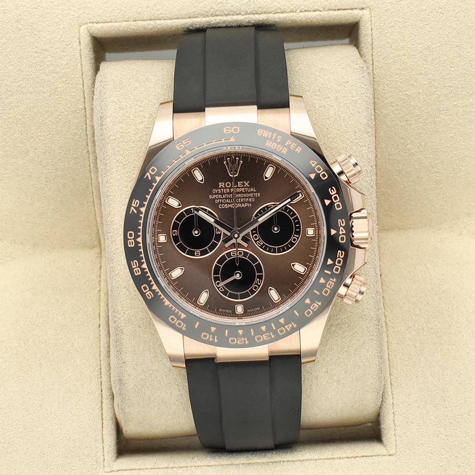 De Rolex Oyster Perpetual Cosmograph Daytona, geïntroduceerd in 1963 is speciaal ontworpen voor professionele autocoureurs. Deze chronograaf biedt de mogelijkheid om race-tijden bij te houden en snelheden te meten dankzij de kenmerkende tachymetrische bezel. De Daytona is een eerbetoon aan de historische plaats Daytona Beach (Florida) waar de passie voor snelheid en racen in de 20ste eeuw hoogtij vierde. De naam weerspiegelt de band tussen Rolex en de autosport, die in 2013 nog verder werd versterkt toen het merk zich aansloot als wereldwijde partner van de Formule 1.