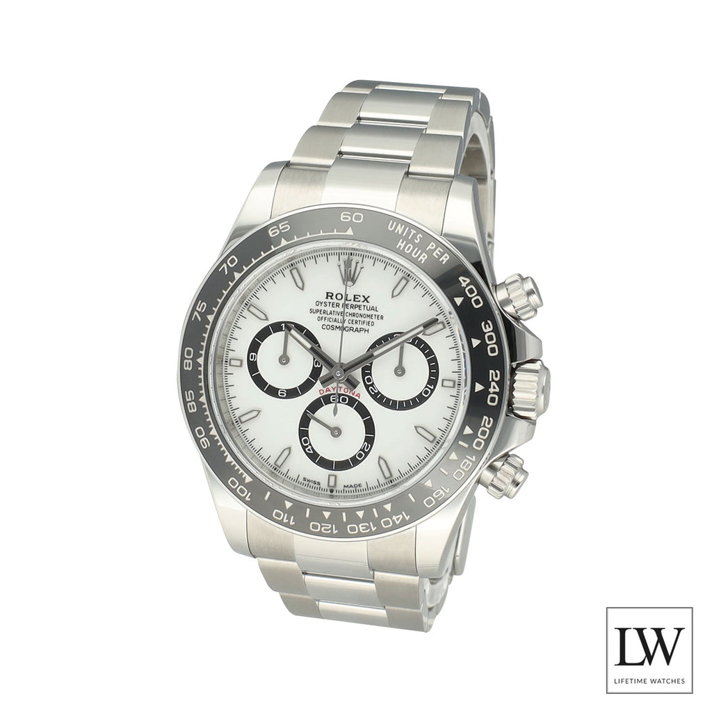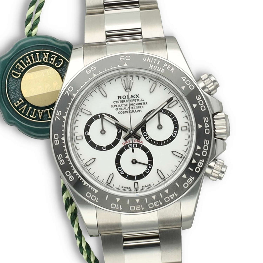 De Rolex Oyster Perpetual Cosmograph Daytona, geïntroduceerd in 1963 is speciaal ontworpen voor professionele autocoureurs. Deze chronograaf biedt de mogelijkheid om race-tijden bij te houden en snelheden te meten dankzij de kenmerkende tachymetrische bezel. De Daytona is een eerbetoon aan de historische plaats Daytona Beach (Florida) waar de passie voor snelheid en racen in de 20ste eeuw hoogtij vierde. De naam weerspiegelt de band tussen Rolex en de autosport, die in 2013 nog verder werd versterkt toen het merk zich aansloot als wereldwijde partner van de Formule 1.