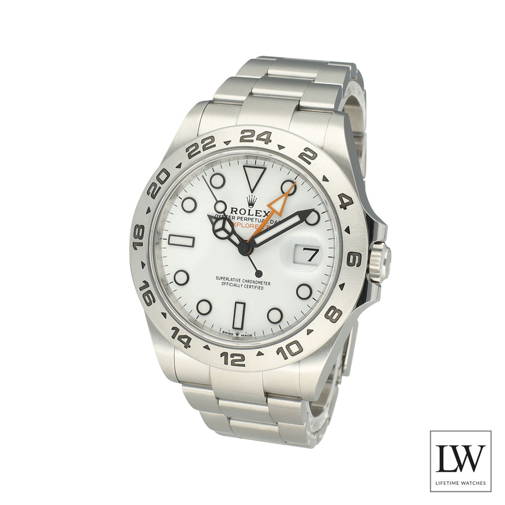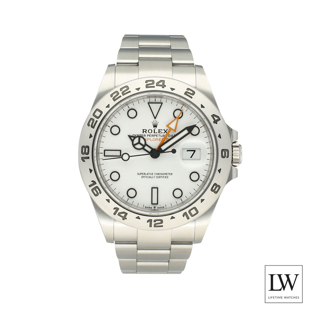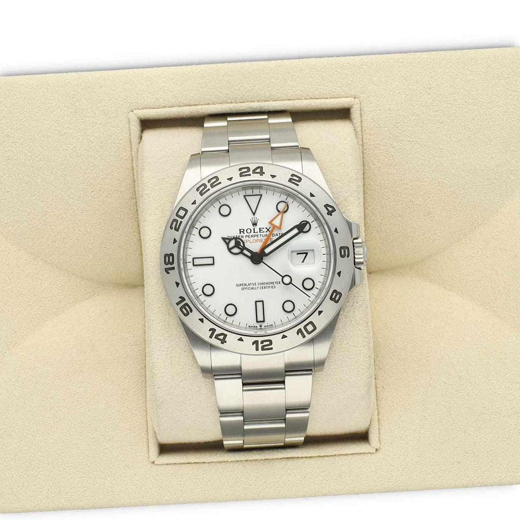 Deze Rolex Explorer II 226570 uit 2022 met witte ‘Polar’ wijzerplaat is het perfecte voorbeeld van de robuustheid en functionaliteit waar de Explorer-lijn om bekendstaat. Dit pre-owned exemplaar verkeert in perfecte staat en wordt geleverd als volledige set, wat het een zeer aantrekkelijk model maakt voor zowel verzamelaars als avontuurlijke dragers.