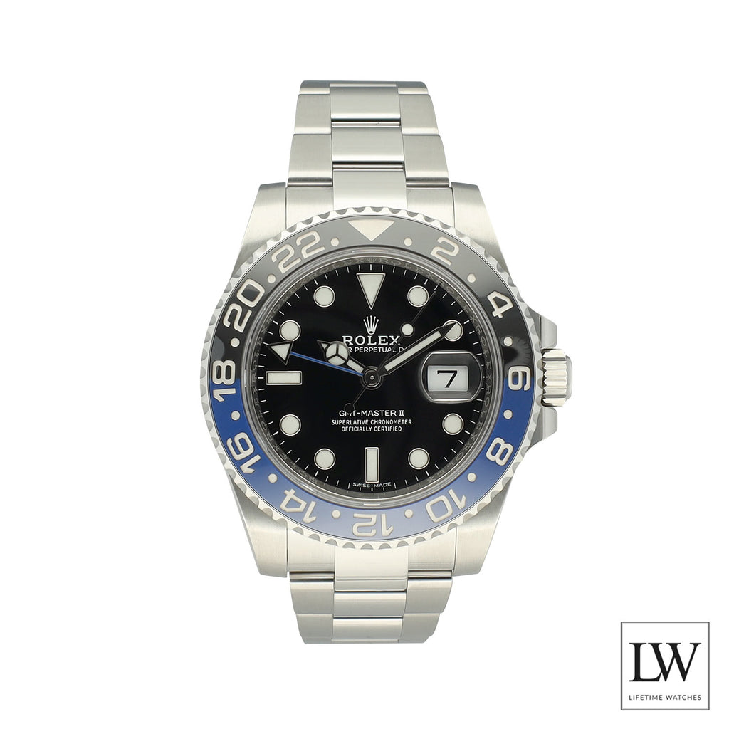 Deze GMT-Master II wordt geleverd als volledige set, is geproduceerd in het laatste productiejaar van de referentie 116710BLNR. inclusief originele Rolex-doos, boekjes en accessoires. Daarnaast ontvangt u een LifeTime Watches certificaat van echtheid en geniet u van 24 maanden LifeTime Watches garantie, zodat u met volledige zekerheid kunt investeren in dit iconische sportmodel.