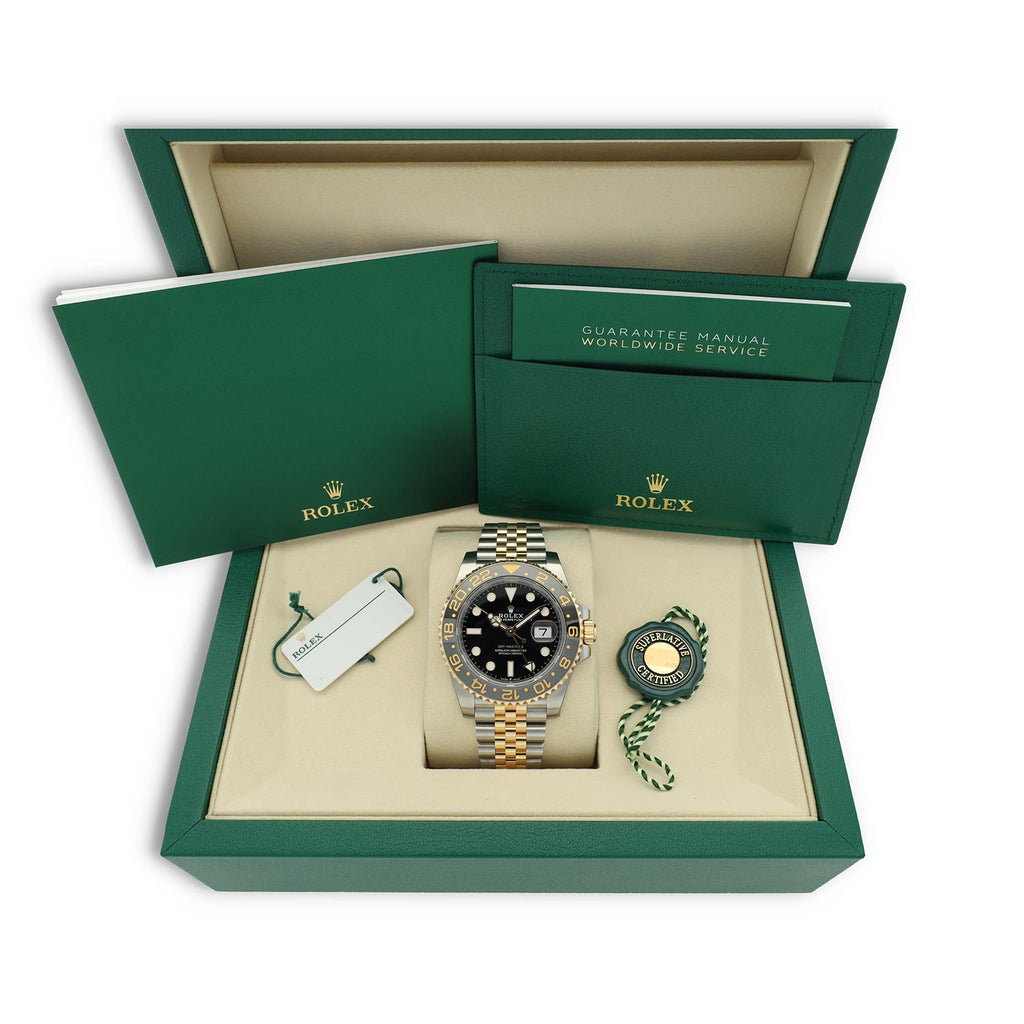 Deze Rolex GMT-Master II met referentie 126713GRNR met zwarte bezel en zwarte wijzerplaat is een van de meest gewilde configuraties binnen de GMT-lijn. Uitgevoerd volledig in Oystersteel en geleverd op de stijlvolle Jubilee-band, combineert dit model sportiviteit, elegantie en tijdloze klasse in één iconisch ontwerp.