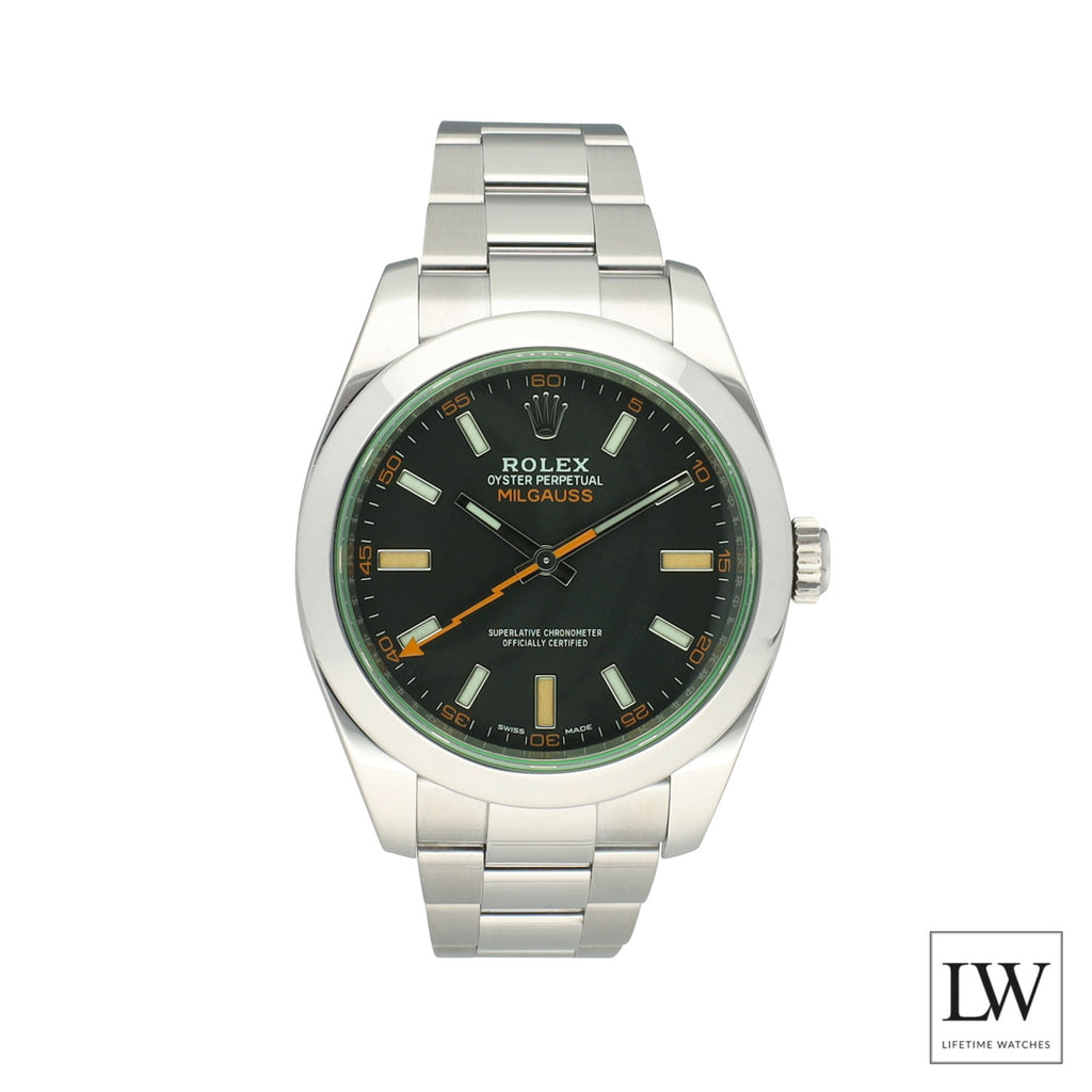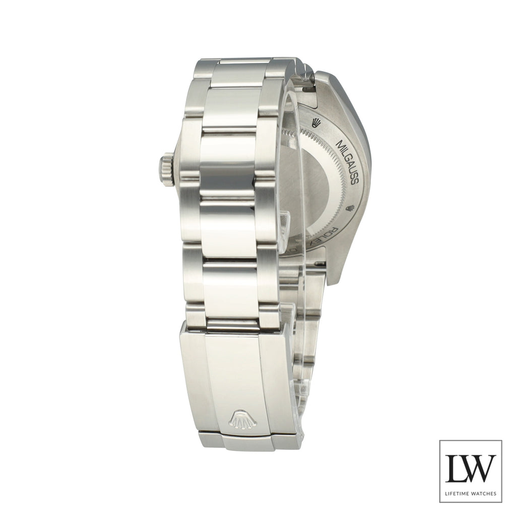 Dit betreft een pre-owned Rolex Milgauss uit 2022 in perfecte staat, uitgevoerd met de Oyster-band en geleverd als full set inclusief originele doos en papieren.