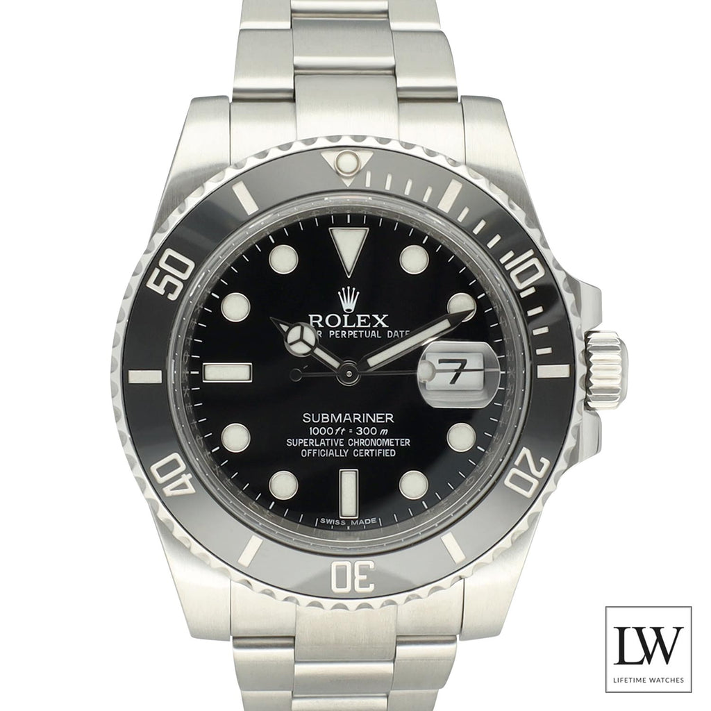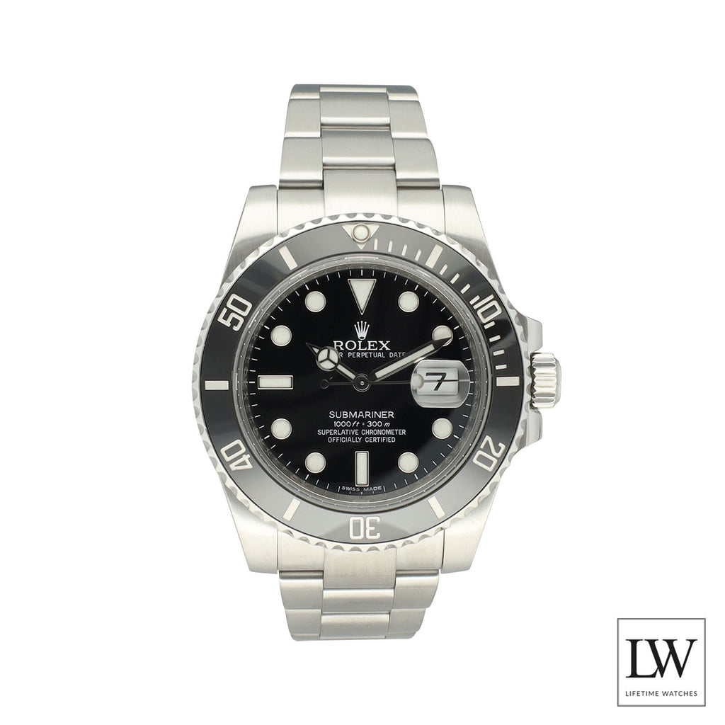 De Rolex Submariner Date ref. 116610LN is een van de meest iconische sporthorloges ooit. De zwarte dial in combinatie met de zwarte Cerachrom bezel zorgt voor een krachtige, tijdloze uitstraling die symbool staat voor het moderne luxe sporthorloge van Rolex.