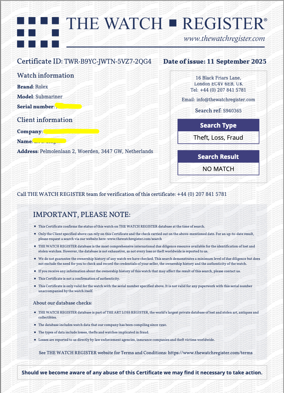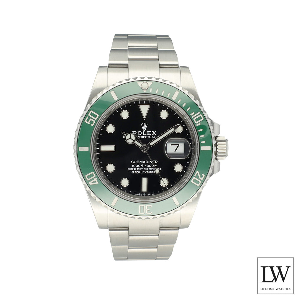 Deze Rolex Submariner ref. 126610LV is afkomstig uit Q4 2020 en wordt geleverd met een originele groene lederen Rolex pouch en het uurwerk zelf. Het is volledig gecontroleerd via het Watch Register én door de officiële Rolex database, waardoor de echtheid gegarandeerd is. Bij het horloge wordt een uitdraai van deze verificatie meegeleverd. Het exemplaar verkeert in absolute topconditie en is bovendien de scherpst geprijsde Starbucks binnen de EU.