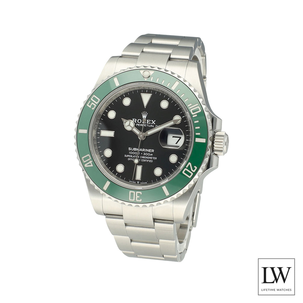 De Submariner Date 126610LV, ook wel bekend als de “Starbucks”, beschikt over een 41 mm Oystersteel kast, een diepzwarte wijzerplaat en een opvallende groene Cerachrom bezel. Deze combinatie geeft het horloge zijn moderne en onderscheidende uitstraling – zowel sportief als stijlvol.
