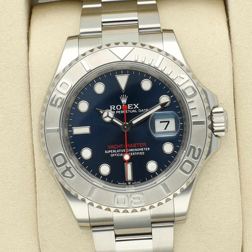 De Yacht-Master is uitgegroeid tot een iconisch horloge binnen de high-end horlogerie. Dankzij de robuuste constructie en eersteklas materialen is dit model bestand tegen zelfs de meest extreme omstandigheden op het water. Tegelijkertijd zorgt het verfijnde ontwerp voor een uitzonderlijke veelzijdigheid, waardoor dit horloge zich moeiteloos laat dragen in het dagelijks leven – thuis, onderweg of op kantoor.
